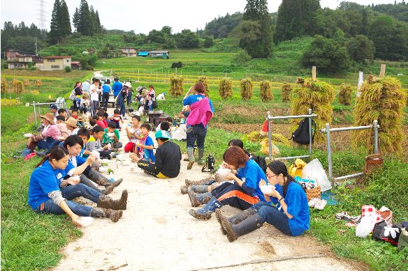 2016年9月28日(水) 2016モンテ棚田米の稲刈り その2 こちら まかない班 ♩ 皆様のお腹を満たす為に、おにぎりを握ったり、 豚汁の準備で汗を流していました。 大学コンソーシアム山形の学生さんと横井教授。 泥だらけになりながら一生懸命に手伝ってくれました。ありがとね〜 この体験がいつか役に立つ事を願っています。 最後にみんなで記念撮影。 みなさんお疲れさま!! 7月に植えた彼岸花が咲きました。